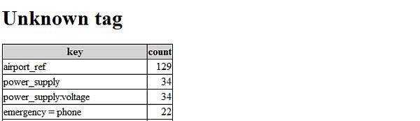 In OpenStreetMap (OSM) werden die Datenobjekte (Knoten, Wege und Relationen) durch Tag's (bestehend aus einem Schlüssel (Key) und einen Wert (Value)) beschrieben. Dieses Programm liest entweder eine OSM-Datei oder eine Änderungsdatei von OSM-Daten (*.osc) und berichtet über unerwartete Tags.